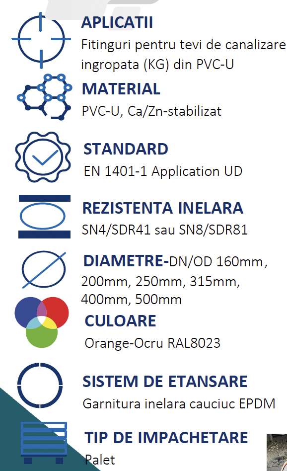 Fitinguri PVC-U pentru canalizare îngropată (KG) — etanșeitate „zero infiltrații”, conforme EN 1401-1 / SR EN 13476